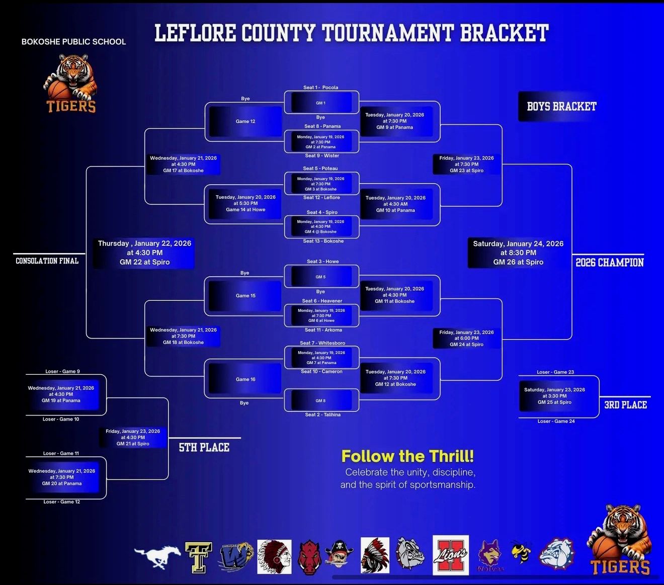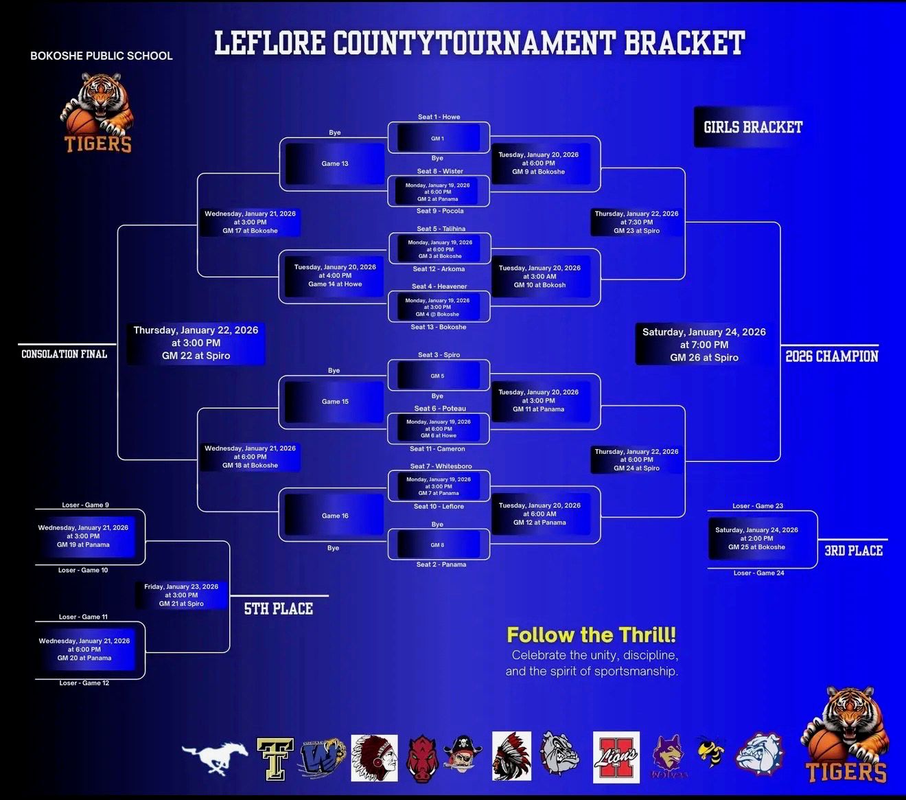 LCT basketball brackets have been released for the 2026 tournament that will be held Jan. 19-24 with Bokoshe as the hosts.
