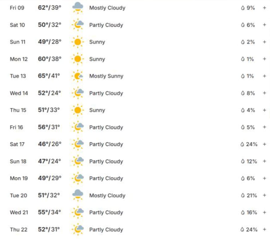 Rainfall | 0.50" (Projected) | 3.10" (Monthly Avg) | N/A |