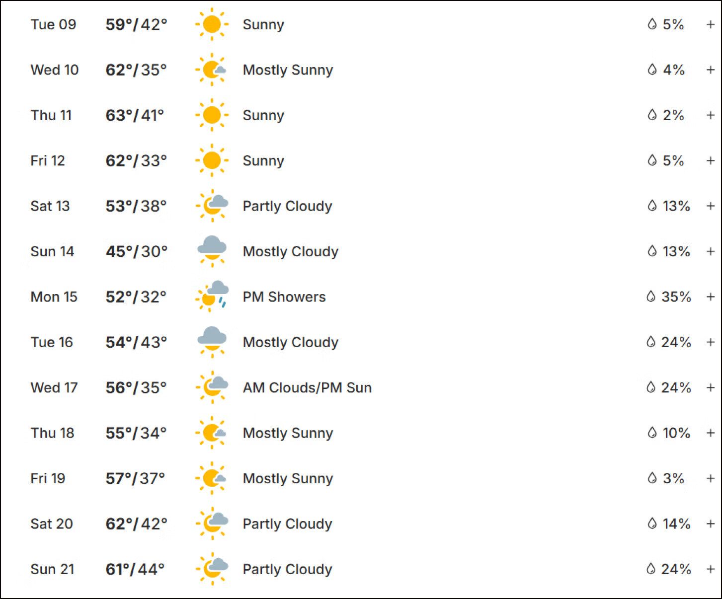 The high is forecast to be 48 degrees with a low of 31 degrees.
