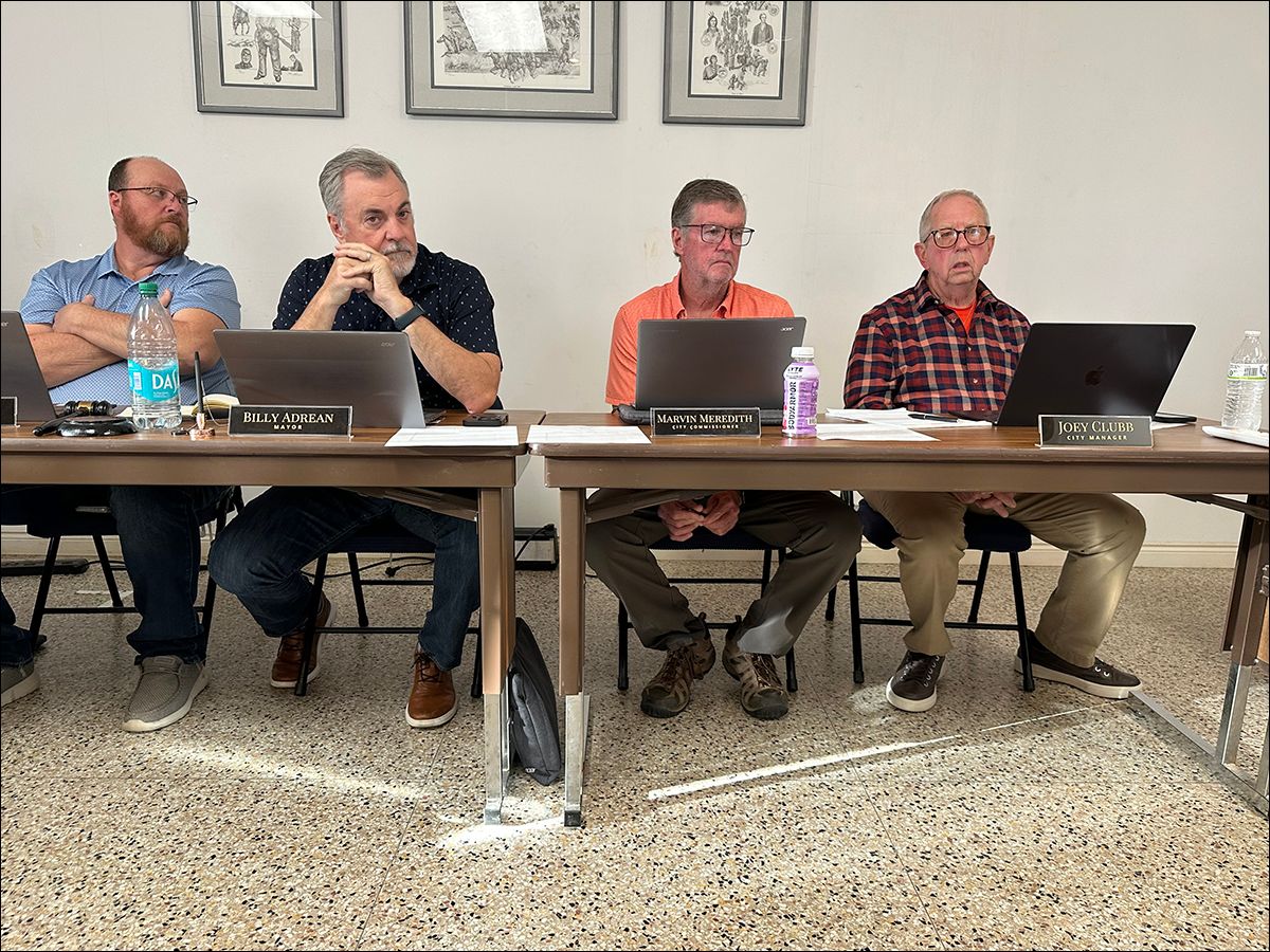 Heavener City Counsellor Craig Olice, Mayor Billy Adrean, Council member Marvin Meredith and City manager Joey Clubb are pictured during Thursday’s meetings.