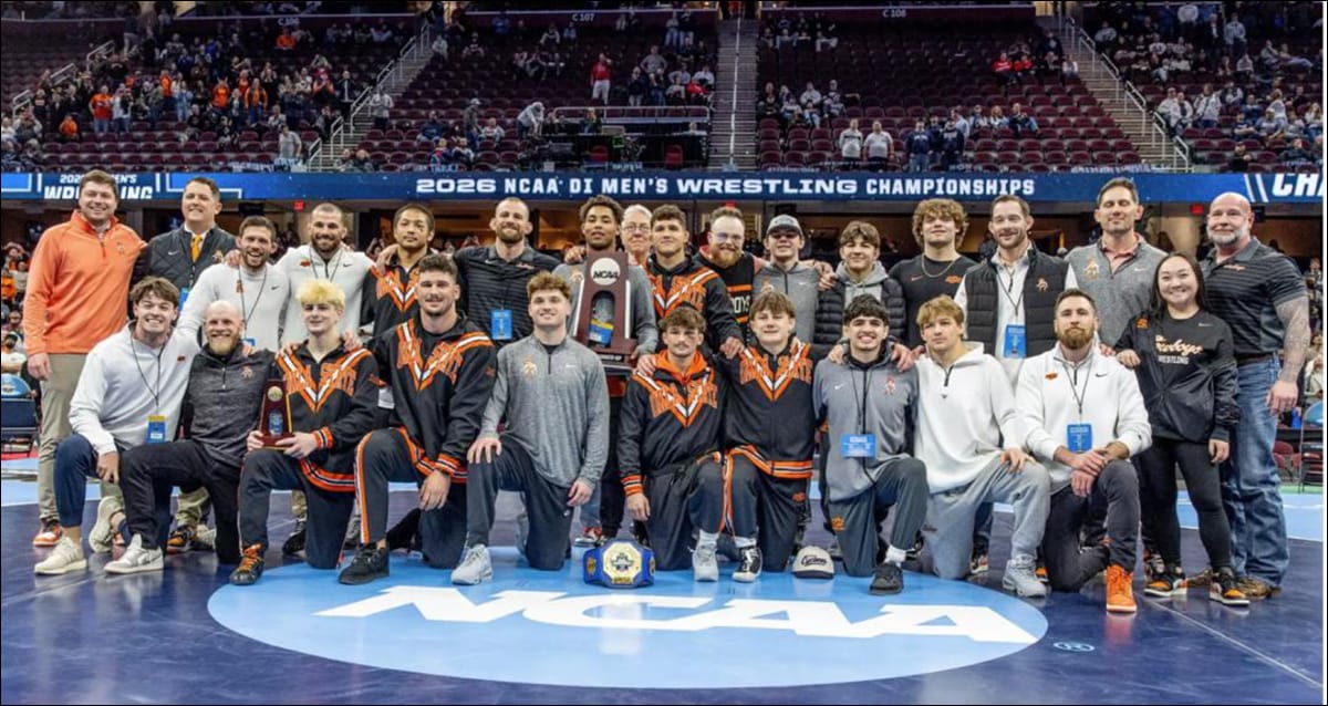 CLEVELAND, Ohio – Oklahoma State wrestlers Sergio Vega, Landon Robideau and Jax Forrest won individual titles at the 2026 NCAA Wrestling Championships Saturday, making OSU the first team in history to record three freshman champions in one year at the national tournament.