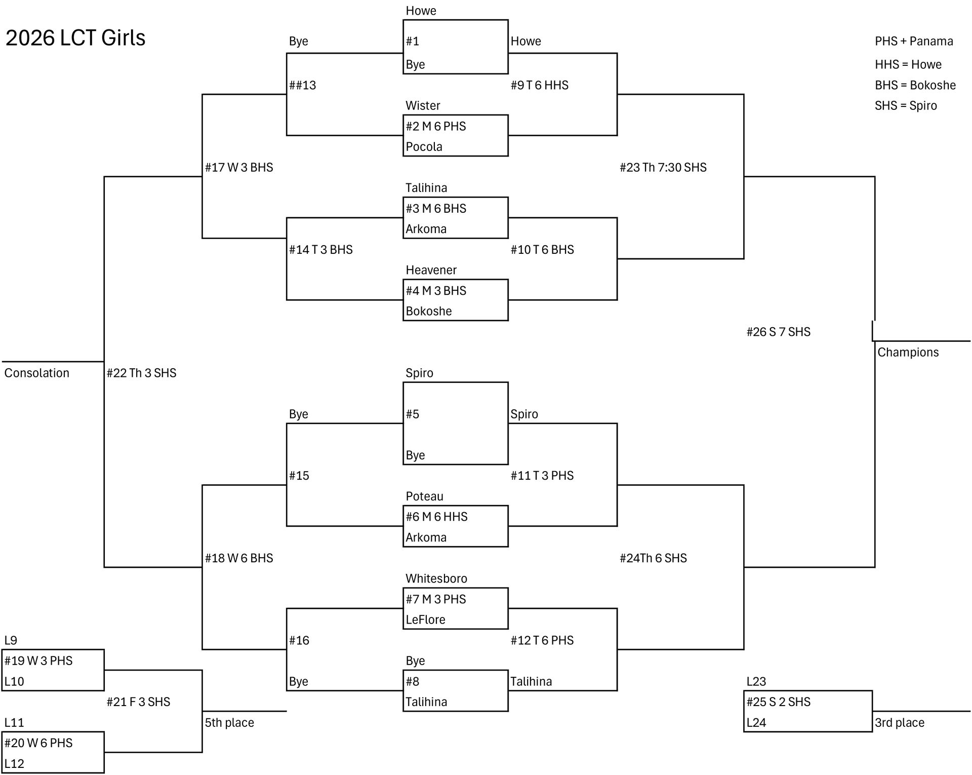 Opening round games will be played at Bokoshe, Panama and Howe.